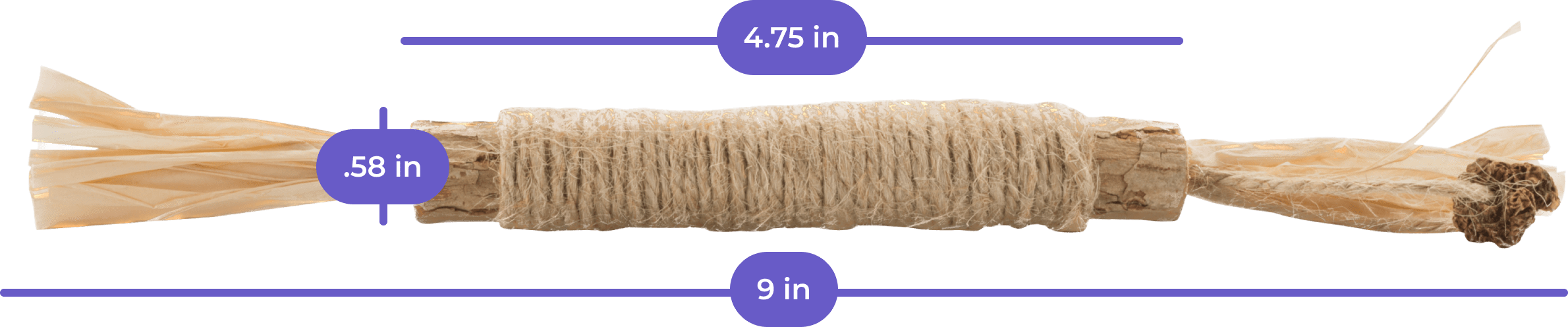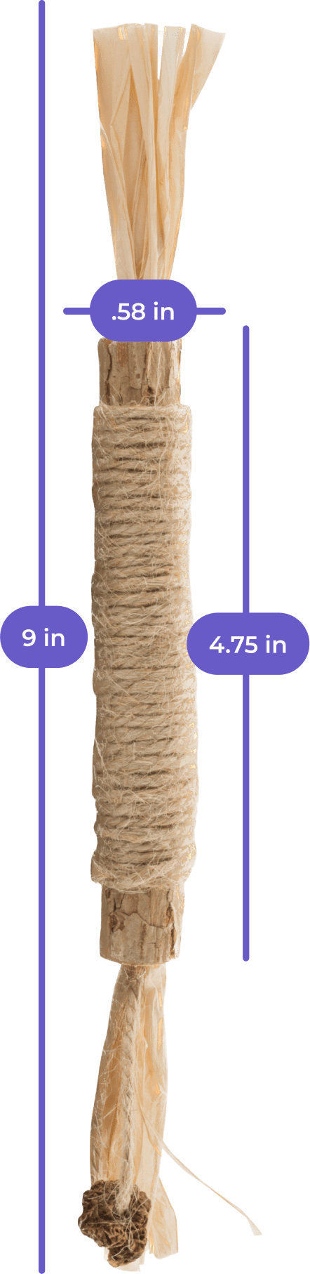 Gall Fruit: This is the fruit that grows on the Silvervine plant. Cats LOVE these little dried fruits. They are edible and naturally dried. We always use sisal rope to attach it to the stick.