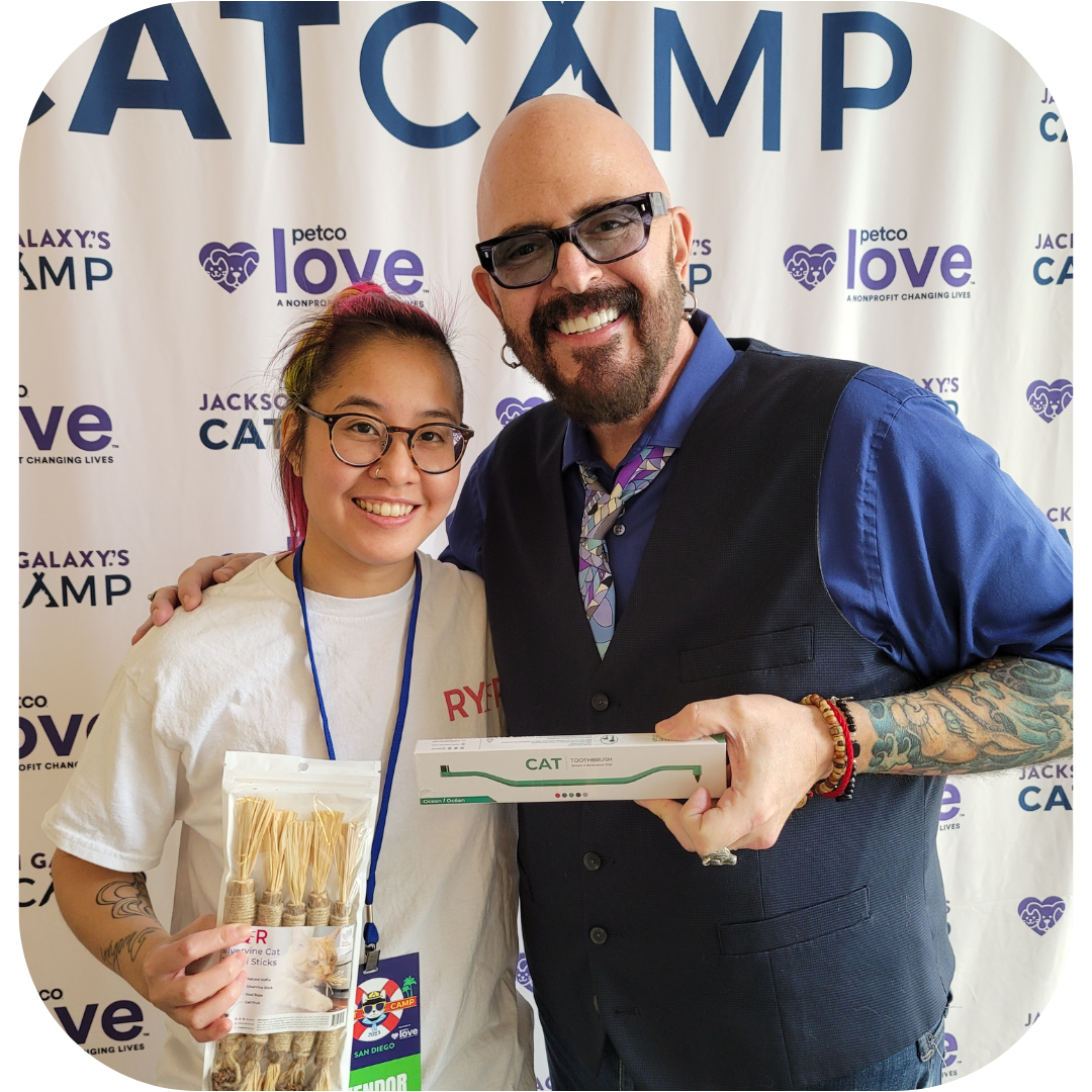 Jae & Adrienne (Known as the Two Crazy Cat Ladies on social media) have over 760K+ followers on TikTok and 225K+ on Instagram LOVE the RYERCAT toothbrush. Picture from SuperZoo 2023 in Las Vegas.